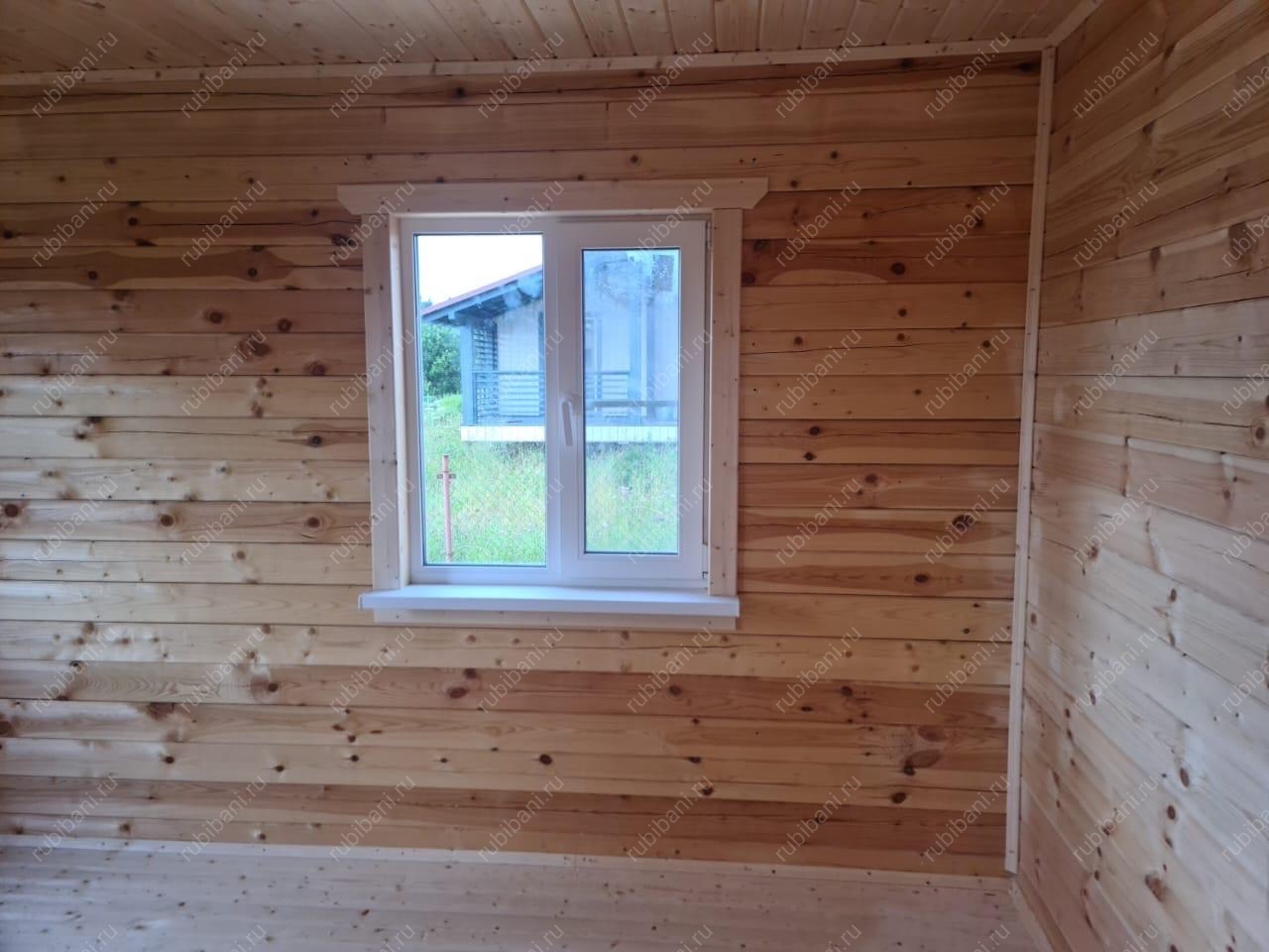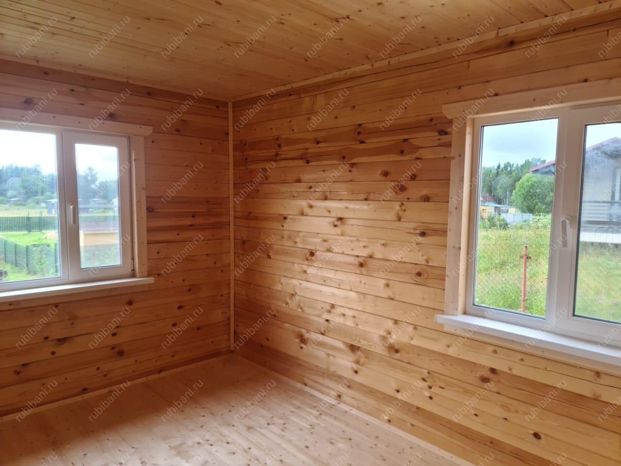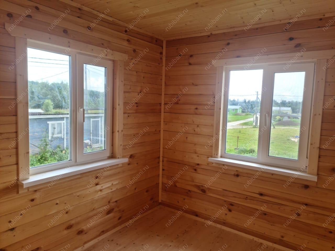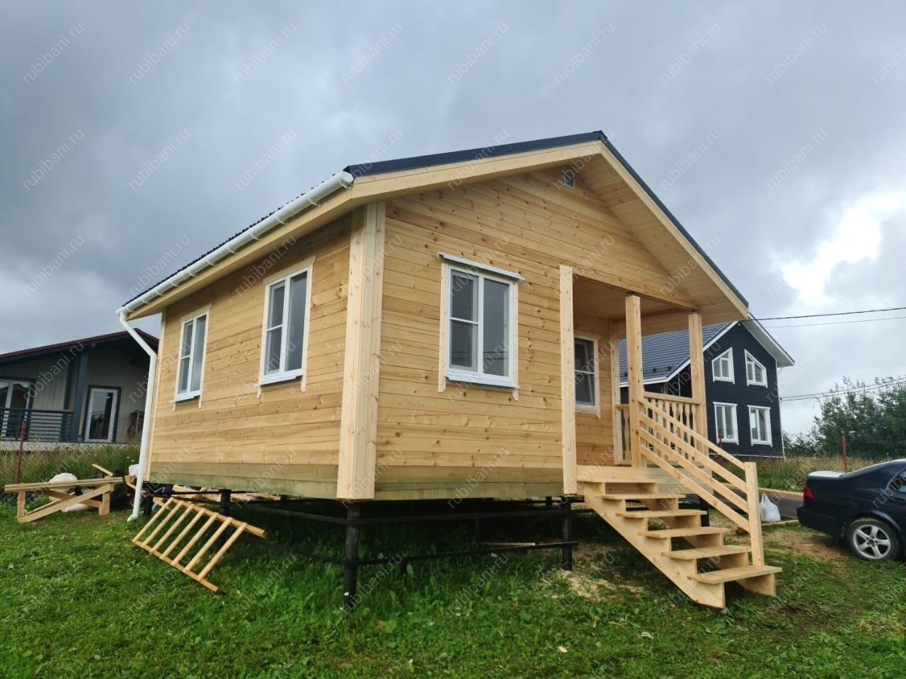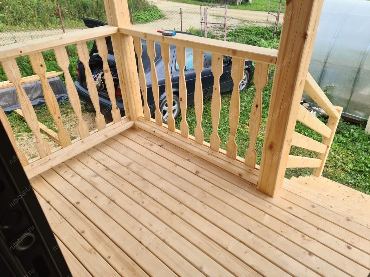 Конструкция бани и веранды выполнена из профилированного бруса, обеспечивающего отличную теплоизоляцию и долговечность. Компактная веранда существенно расширяет полезную площадь, создавая плавный переход между интерьером бани и окружающей природой, не нарушая гармонии участка.