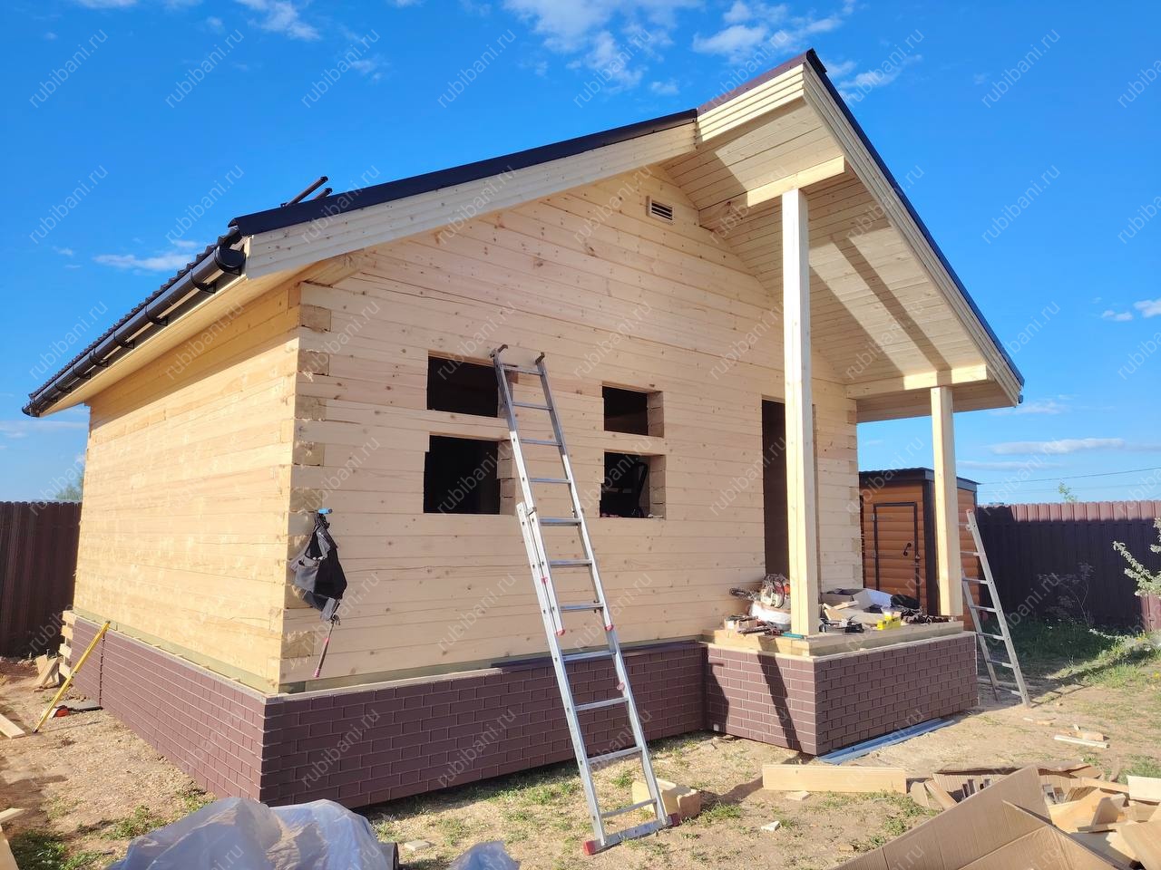 Конструкция выполнена из высококачественного профилированного бруса, обеспечивающего превосходную теплоизоляцию, стабильность геометрии и долговечность. Площадь 36 кв. метров рационально распределена между парной и уютной комнатой отдыха с двумя окнами для естественного света. Визитной карточкой проекта стало элегантное крыльцо, которое превратило входную зону в эффектную архитектурную деталь, задающую тон всему строению и подчеркивающую вкус владельца.